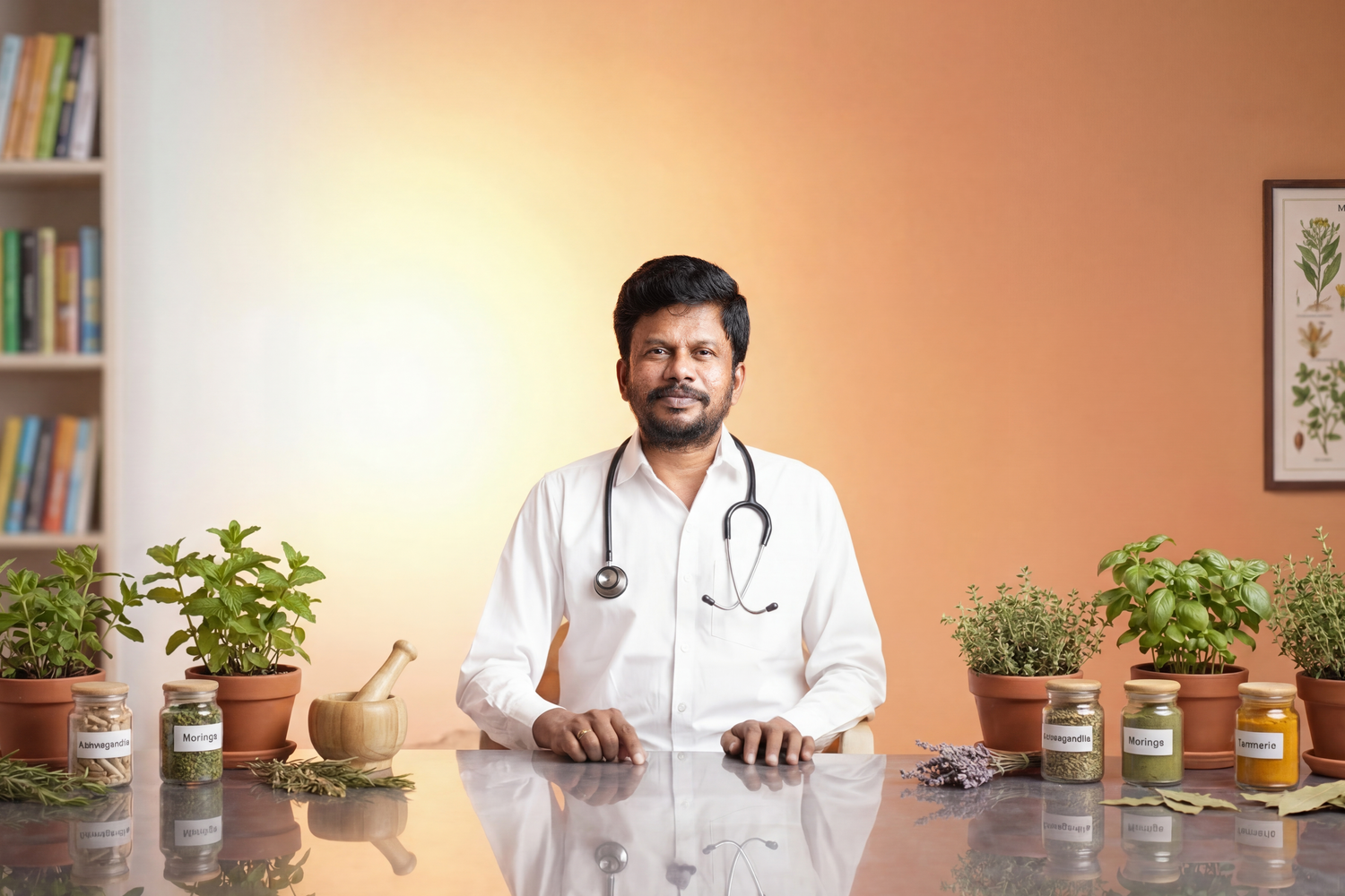 Trained in classical Ayurveda with over two decades of clinical experience, Dr. Krishna has helped thousands of patients across Hyderabad find natural, lasting relief — without side effects. From chronic digestive issues to joint pain, skin conditions to hormonal imbalance, every Happy Herbals product is formulated from his personal practice and deep knowledge of medicinal herbs.