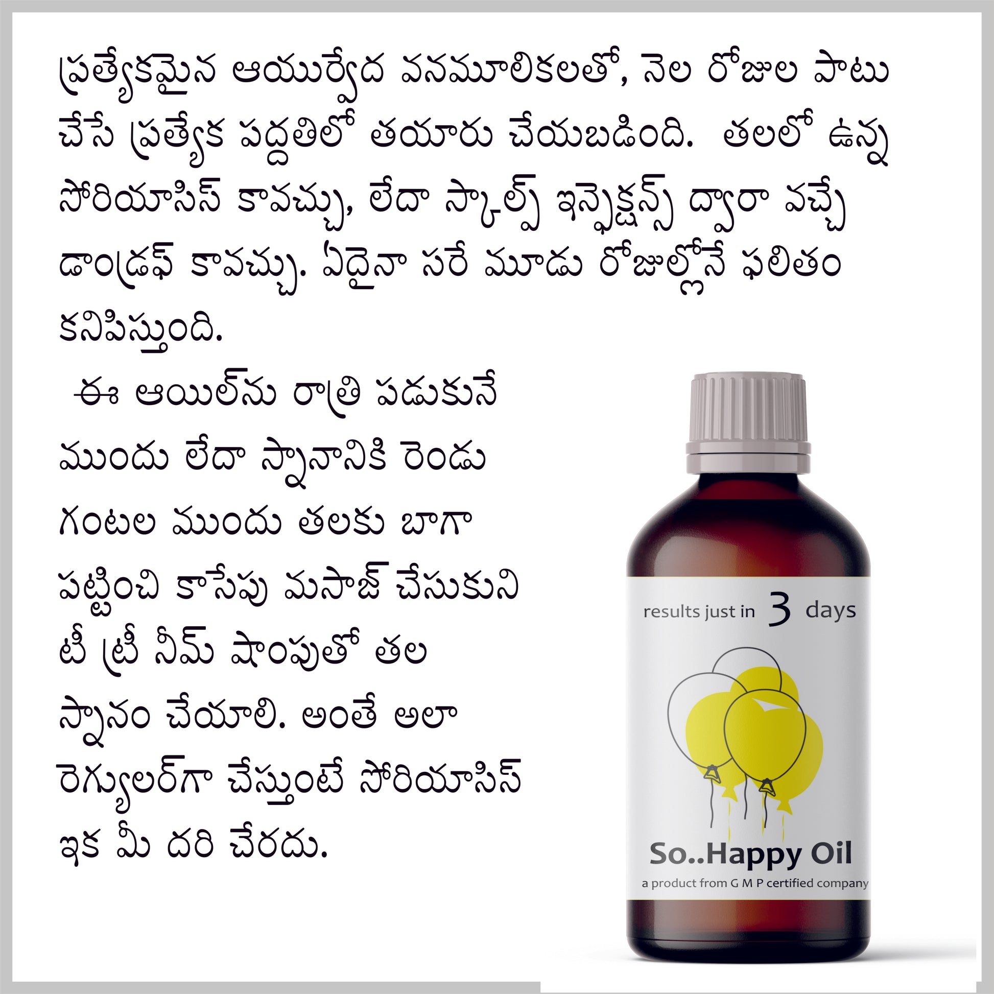 The Psoriasis Care Pack from Happy Herbals is a 100% Ayurvedic combination of four powerful external-use products made from herbal extracts and oils. Designed to support relief from Psoriasis, eczema, dry skin conditions, dandruff, and scalp infections — this set includes: Herbal Bath Powder, So Happy Cream, Tea Tree Neem Shampoo, and So Happy Oil.