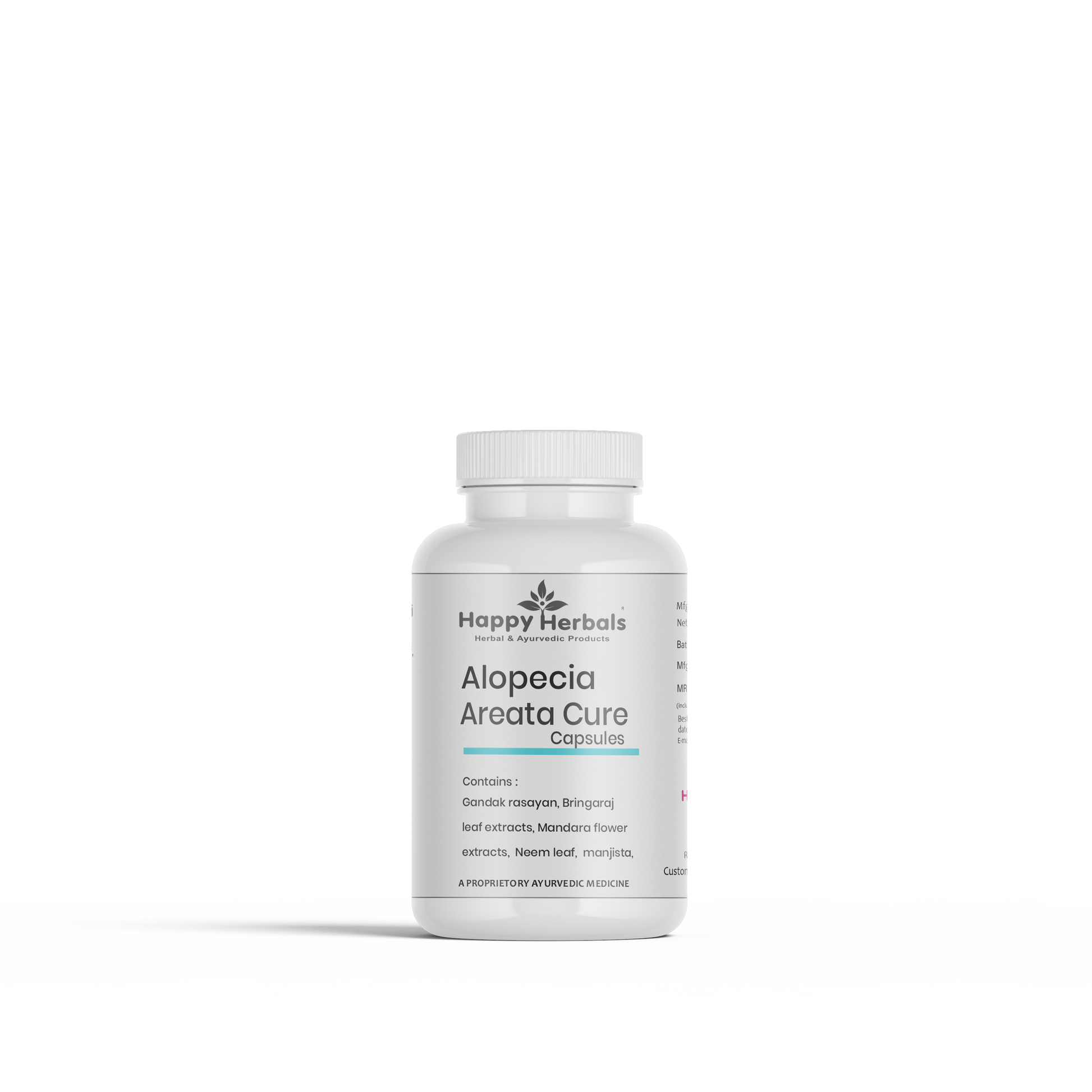 Happy Herbals Alopecia Cure Capsules are a powerful Ayurvedic solution specially designed to reduce hair loss and promote hair regrowth in individuals suffering from alopecia, beginning from stage 2. Crafted with time-tested herbs and nutrient-rich ingredients, this natural remedy targets the root causes of hair thinning while nourishing the scalp from within.