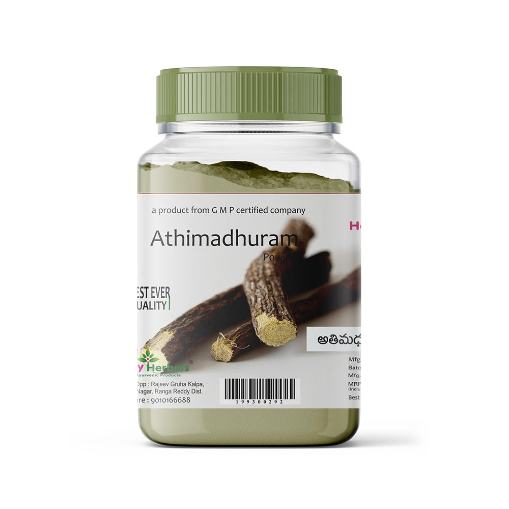 Athimadhuram powder is an excellent digestive herb. The anti-flatulent property of the roots reduces the formation of gas in the alimentary canal, thus reducing flatulence, bloating, and abdominal distension. It also increases appetite, reduces indigestion, and promotes better absorption of nutrients in the body higher concentration of fiber in the root powder, makes this a potent remedy for constipation and other digestive issues.