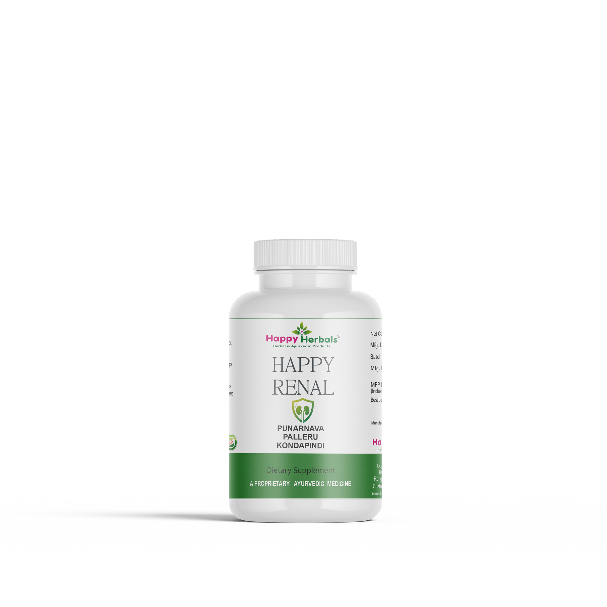 Happy Renal Capsules by Happy Herbals are a powerful Ayurvedic formulation crafted to support kidney health, aid detoxification, and help maintain proper urinary flow. Blended with time-tested herbs like Punarnava, Palleru, and Kondapindi, these capsules serve as a natural elixir for the kidneys—supporting their filtration power and protecting them from toxic overload.