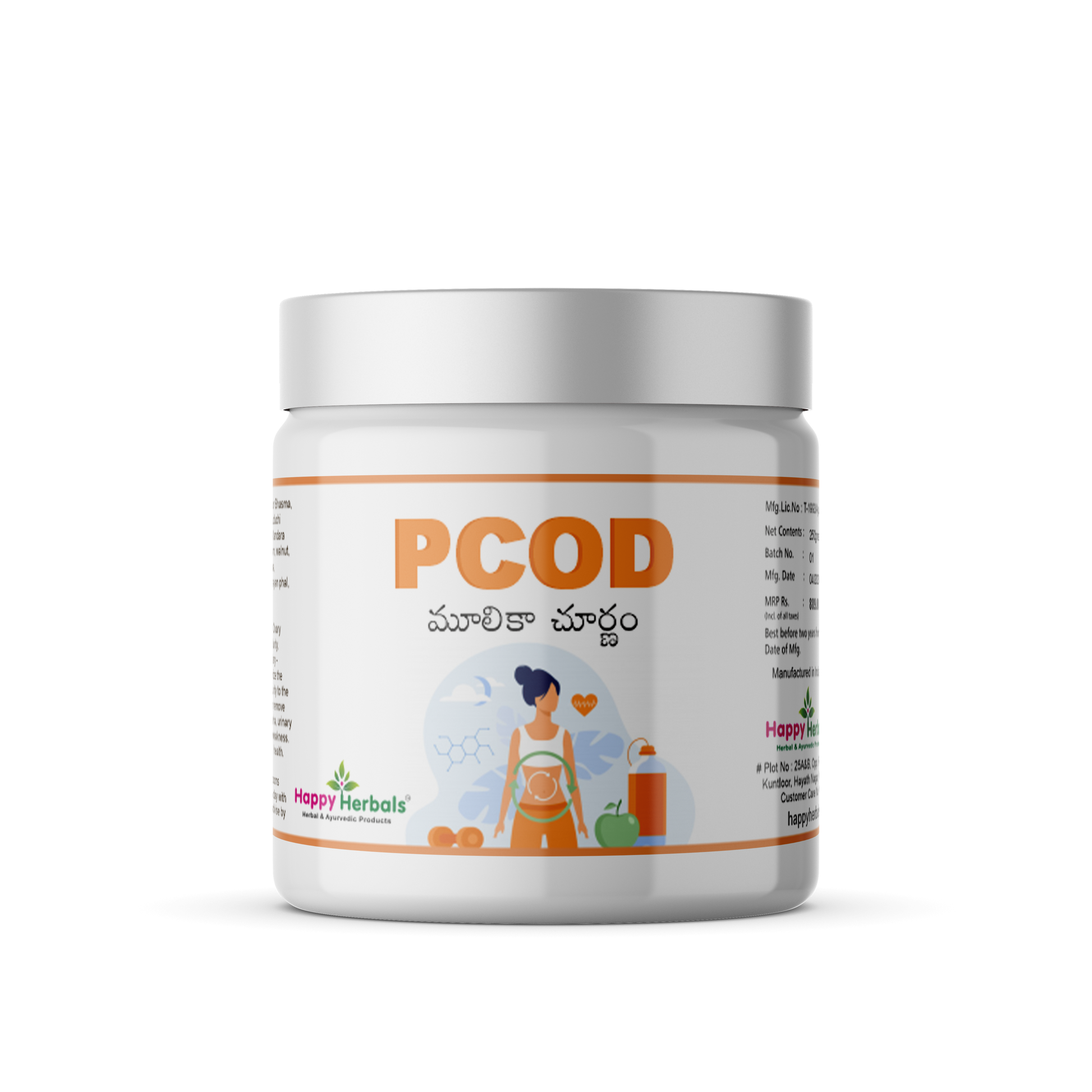 Happy Herbals proudly presents PCOD Moolika Churnam, a traditional Ayurvedic formulation designed to support women dealing with PCOD (Polycystic Ovary Disorder), irregular periods, and related reproductive health issues. Crafted with a unique blend of time-tested herbs, this churnam helps restore hormonal balance, promote regular menstruation, and strengthen the uterus and ovaries.