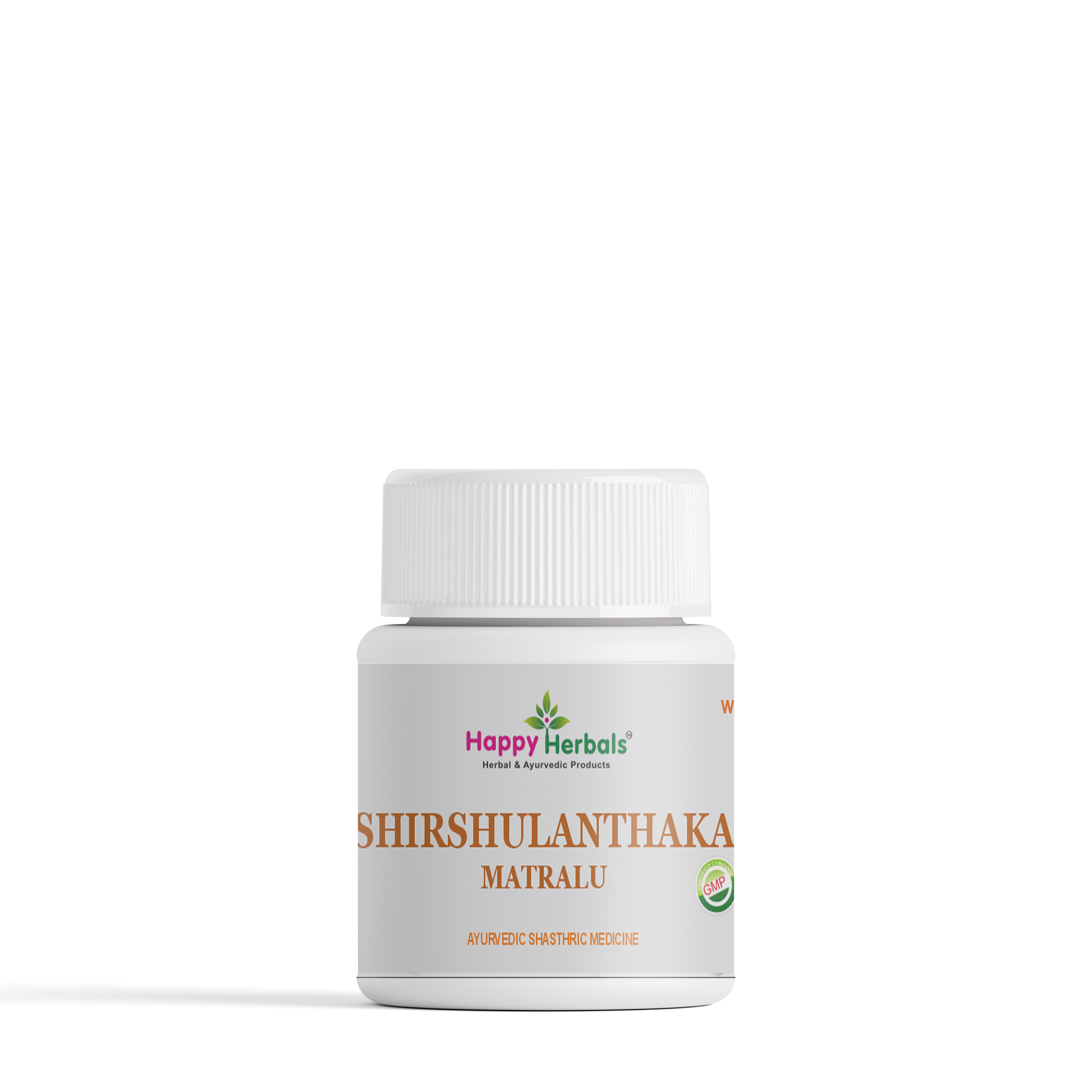 Happy Herbals presents Shirshoolantaka Matralu, a powerful Ayurvedic formulation specially prepared to relieve headaches, migraines, and associated symptoms like heaviness, throbbing pain, and stress. Rooted in Ayurvedic principles, this herbal medicine works gently yet effectively to calm the nervous system and reduce head-related discomfort.