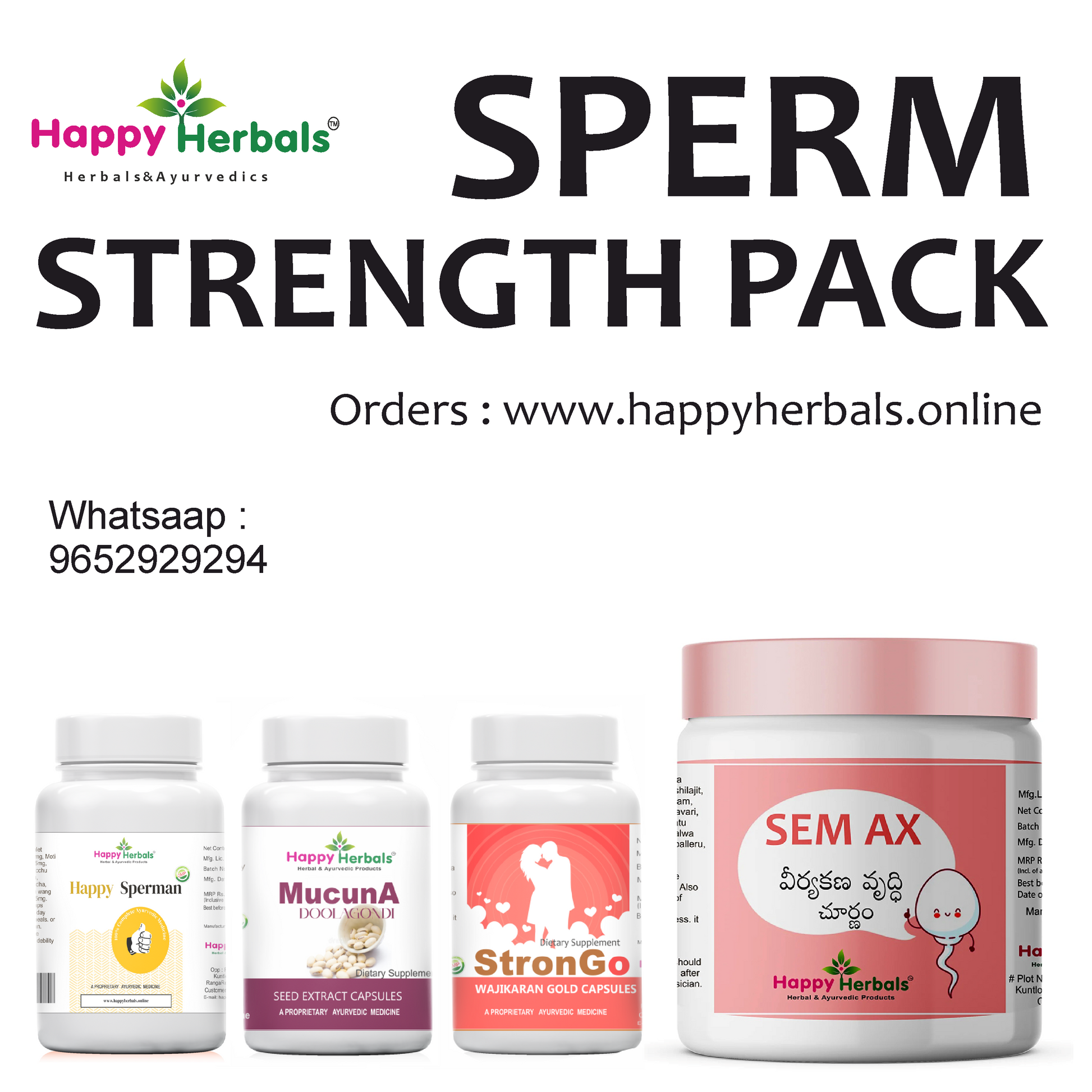 A powerful Ayurvedic combination designed to improve sperm count, quality, and stamina in men. The Sperm Strength Pack by Happy Herbals supports natural fertility and strengthens reproductive health through time-tested herbal remedies.