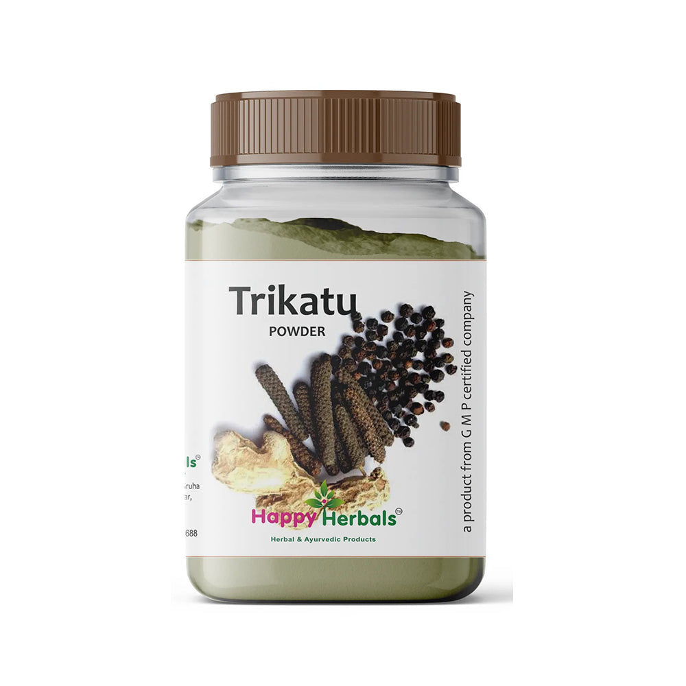 Enhance your well-being with Trikatu Churna by Happy Herbals. Consult with a healthcare professional or Ayurvedic practitioner for personalized advice on dosage and usage based on your specific health needs.