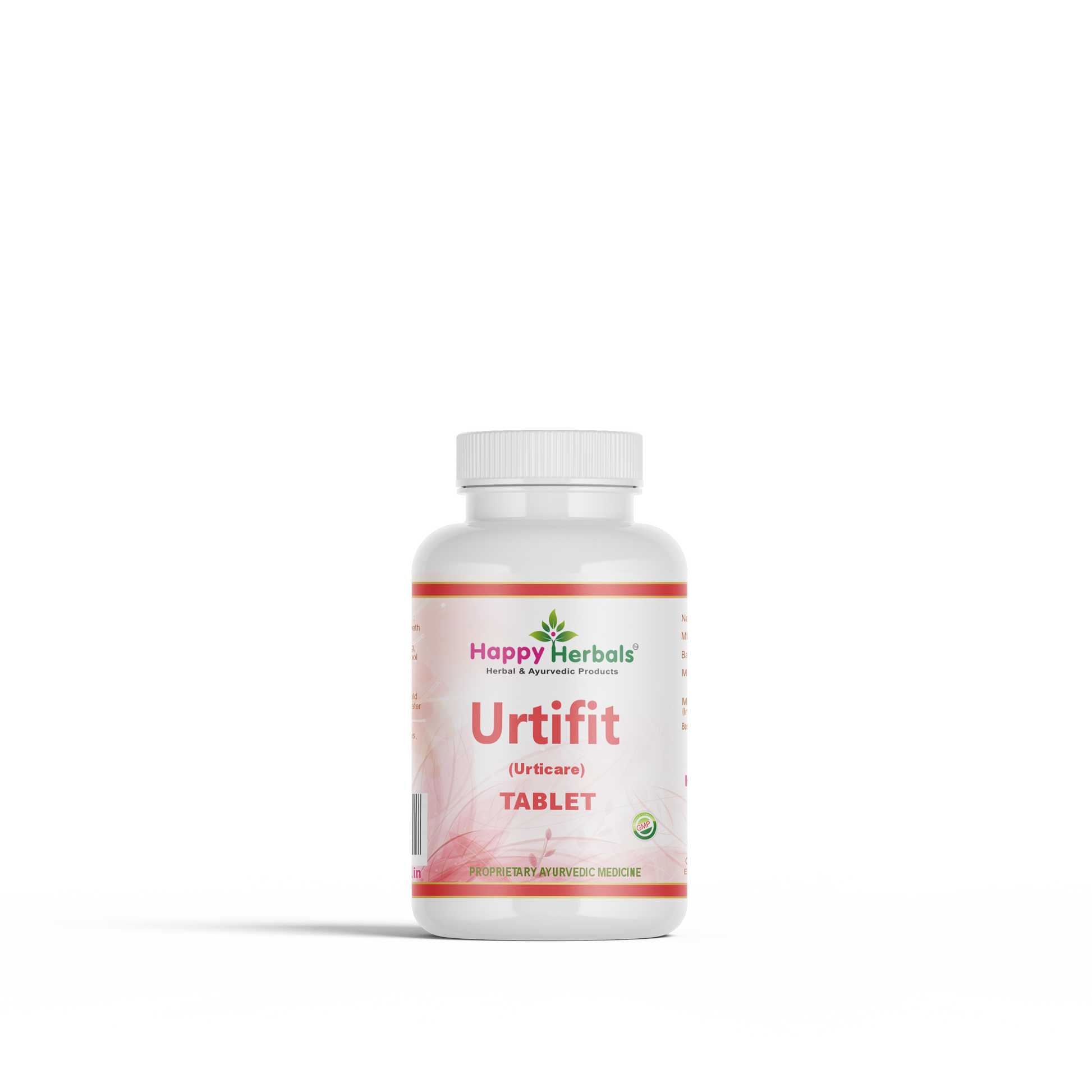 Urtifit Tablets by Happy Herbals are a specialized Ayurvedic remedy designed to provide effective relief from Urticaria (skin rashes with itching and redness), Sheetapitta, and various other allergic skin conditions. Made from a synergistic blend of time-tested herbs, Urtifit works at the root level to reduce hypersensitivity reactions, detoxify the blood, and calm aggravated Pitta and Kapha Doshas.